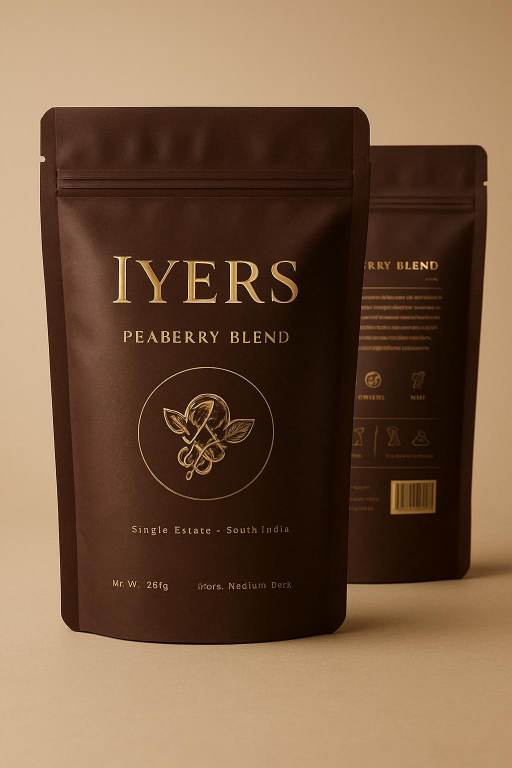 In every coffee harvest, a small percentage of beans are different. Instead of forming as two flat-sided beans inside the cherry, a single round bean develops — whole, compact, and rare. Because it grows alone inside the fruit, the peaberry absorbs more concentrated nutrients, resulting in a brighter aroma and a fuller, more vibrant flavor profile. When roasted with precision and brewed through the traditional South Indian filter, the decoction becomes rich, smooth, and deeply aromatic. It carries a natural sweetness with subtle fruity notes, balanced by a bold body that stands beautifully against hot milk. Peaberry is not just rare by nature. It is distinctive by character.