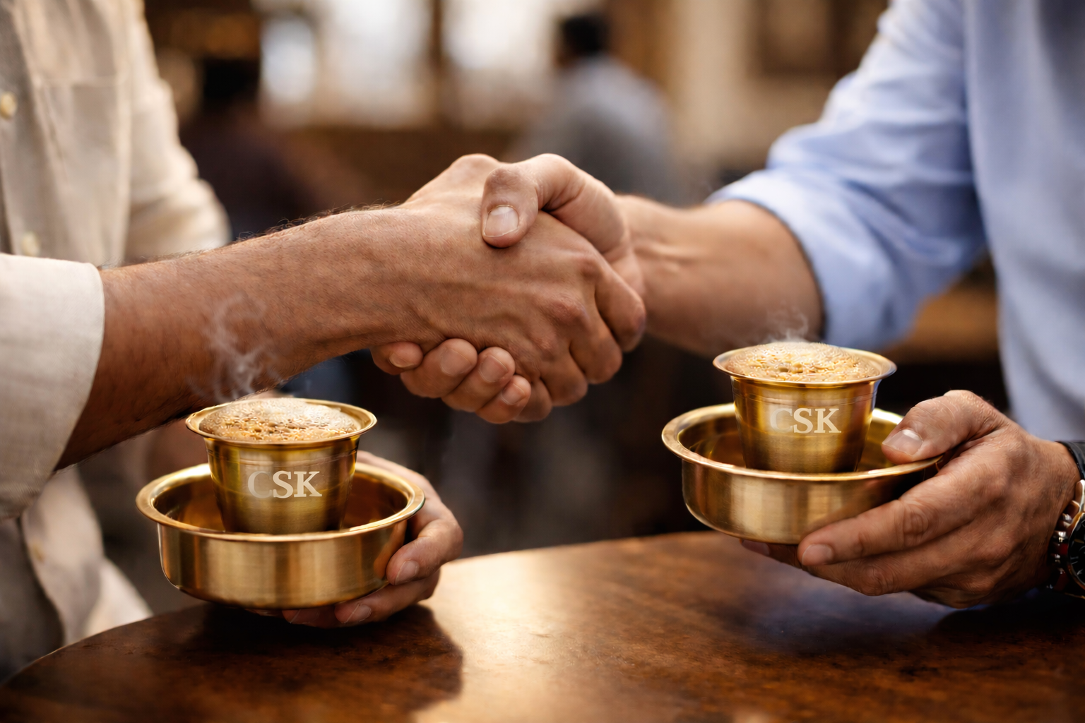 “CHENNAI SUPER KOFFEE” has emanated with a motto of delivering the original taste of Traditional South Indian Filter coffee at a friendly price to the mass people. The name “Chennai Super Koffee” has been chosen to signify that the filter coffee has originated from Chennai with its own tradition and flavor. It understands that a cup of good coffee has brought people together and stimulated community for centuries. Coffee quickens the synapses, elucidating everything from mundane discourse to revolutionary ideas. That is why our passion to deliver every cup with excellence is still at its peak. Our coffee promises to unlock the many potential flavors to achieve a delicate, nuanced, and balanced cup of coffee that best showcases the characteristics that makes each sip a unique experience.